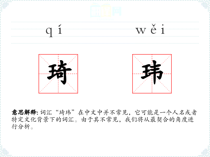 词汇“琦玮”在中文中并不常见,它可能是一个人名或者特定文化背景下的词汇。由于其不常见,我们将从最契合的角度进行分析。