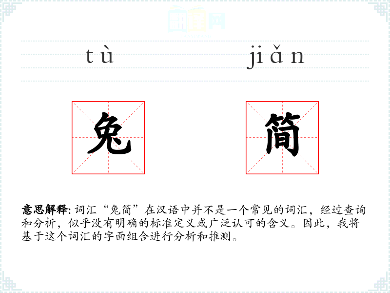 "兔简"的意思解释、兔简是什么意思由翻译网汉语词典查词提供。