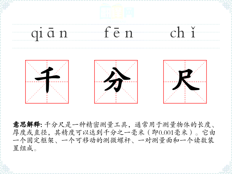 "千分尺"的意思解释、千分尺是什么意思由翻译网汉语词典查词提供。
