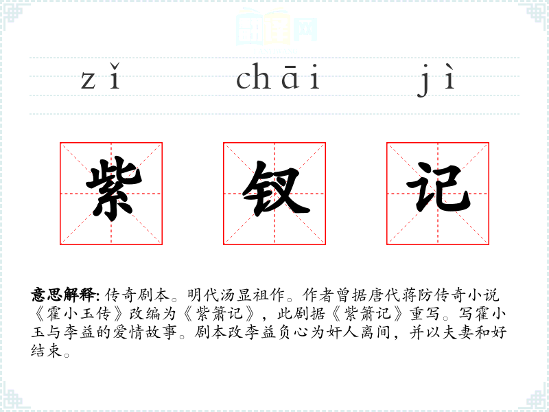 紫钗记的分字解释
