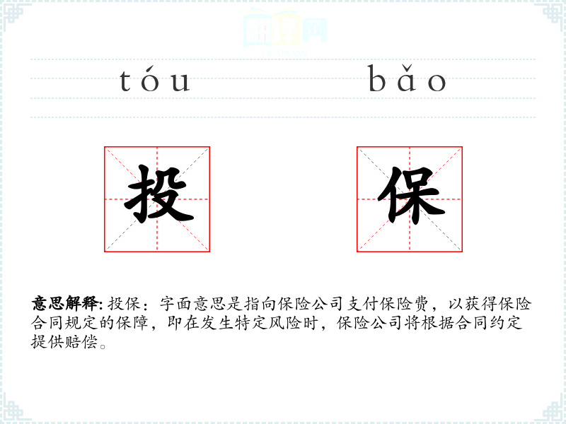 - 专业领域:在保险行业,“投保”是一个核心术语,涉及到保险合同的签订和保险费的支付。