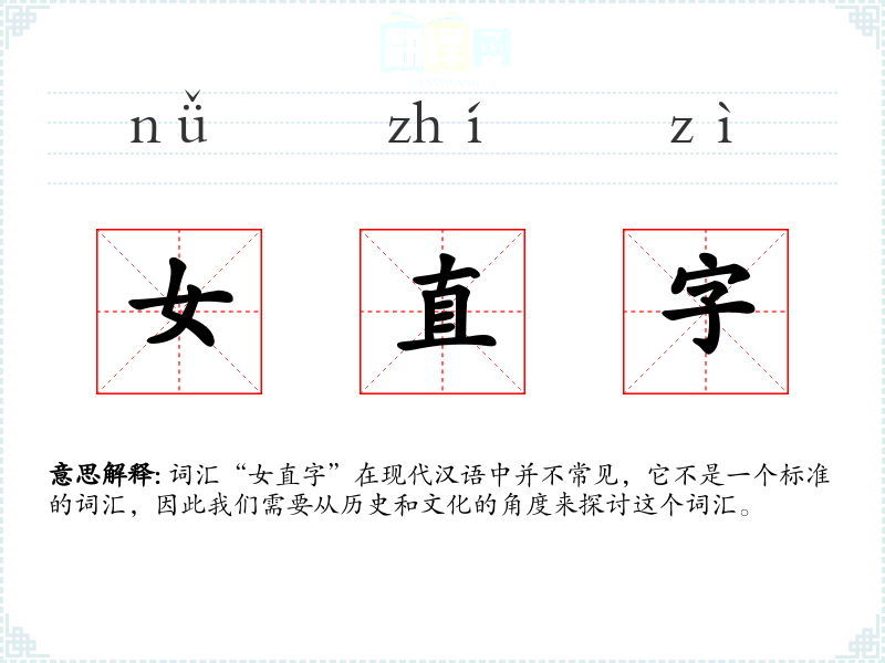 词汇“女直字”在现代汉语中并不常见,它不是一个标准的词汇,因此我们需要从历史和文化的角度来探讨这个词汇。