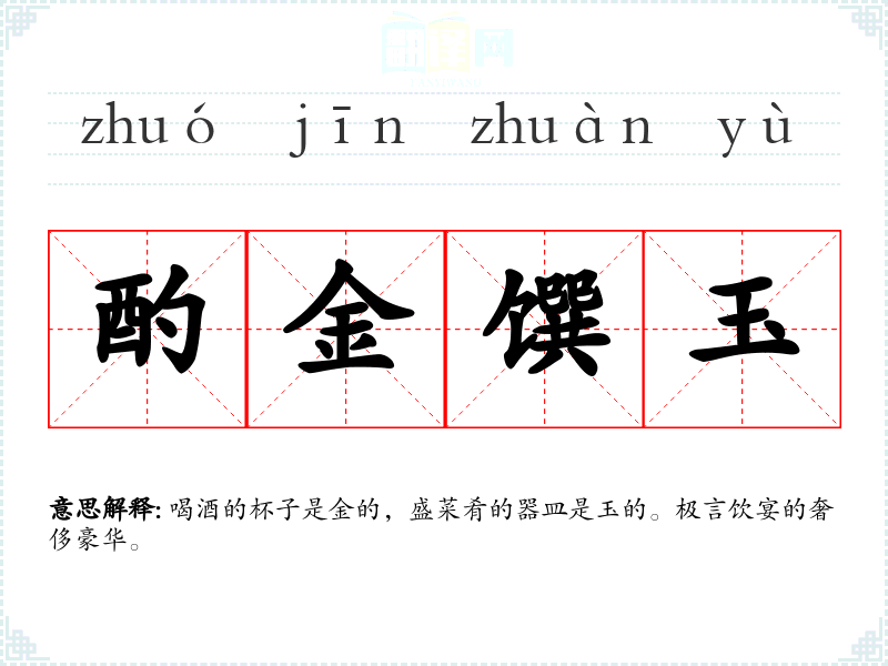 喝酒的杯子是金的,盛菜肴的器皿是玉的。极言饮宴的奢侈豪华。