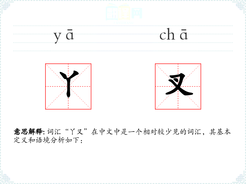 词汇“丫叉”在中文中是一个相对较少见的词汇,其基本定义和语境分析如下: