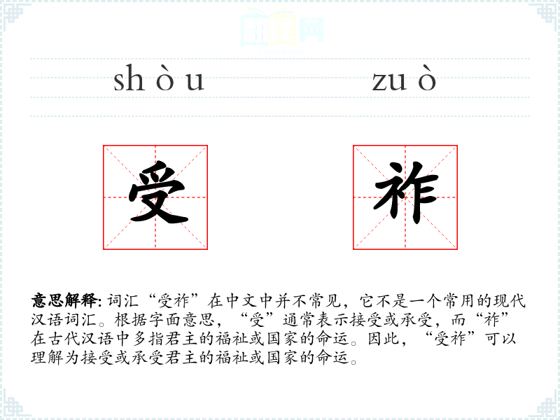 “受祚”是一个具有特定历史和文化背景的词汇,虽然在现代汉语中不常用,但它反映了古代中国社会的政治和文化特点。了解这个词汇可以帮助我们更好地理解古代文献和历史文化。