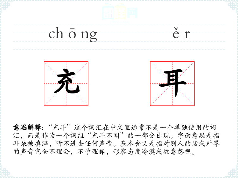 "充耳"的意思解释、充耳是什么意思由翻译网汉语词典查词提供。