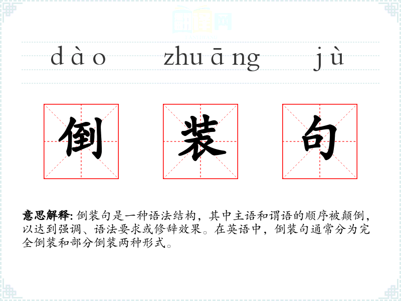 "倒装句"的意思解释、倒装句是什么意思由翻译网汉语词典查词提供。