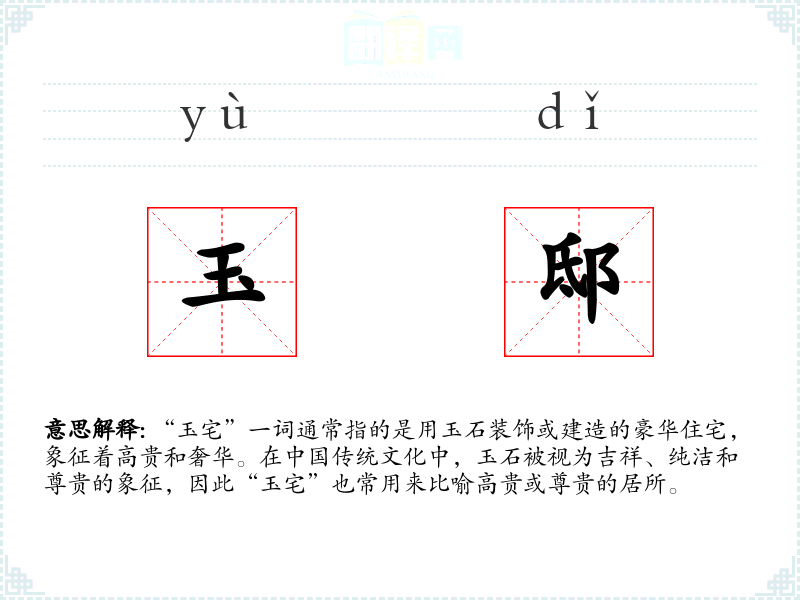 - 专业领域:在建筑或房地产领域,可能不会直接使用“玉宅”,而是用更具体的词汇来描述豪华住宅。