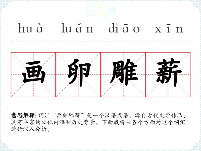 词汇“画卵雕薪”是一个汉语成语,源自古代文学作品,具有丰富的文化内涵和历史背景。下面我将从各个方面对这个词汇进行深入分析。