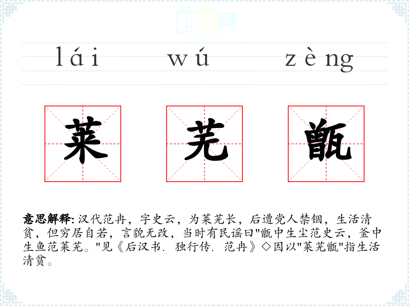 范莱芜。"见《后汉书.独行传.范冉》◇因以"莱芜甑"指生活清贫。