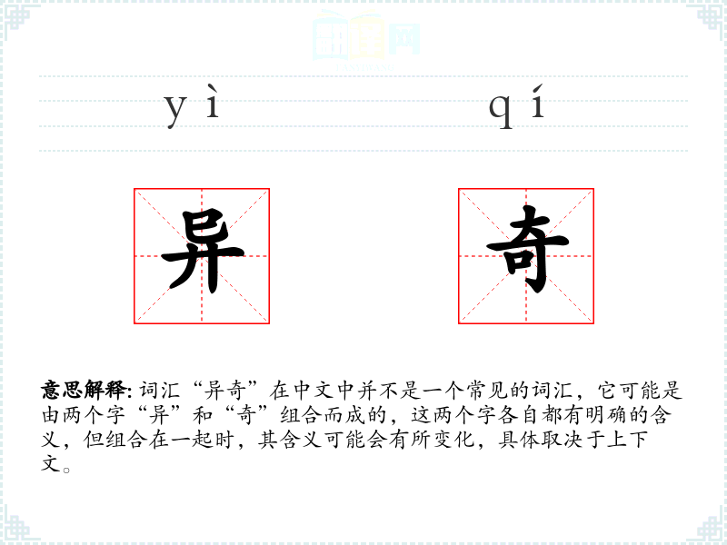 词汇“异奇”在中文中并不是一个常见的词汇,它可能是由两个字“异”和“奇”组合而成的,这两个字各自都有明确的含义,但组合在一起时,其含义可能会有所变化,具体取决于上下文。