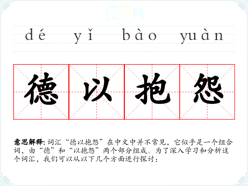 - 字面意思:字面上看,“德以抱怨”可以理解为“以德行来表达不满或抱怨”。这里的“德”通常指的是道德、品德或美德,而“以抱怨”则是指通过某种方式表达不满或批评。