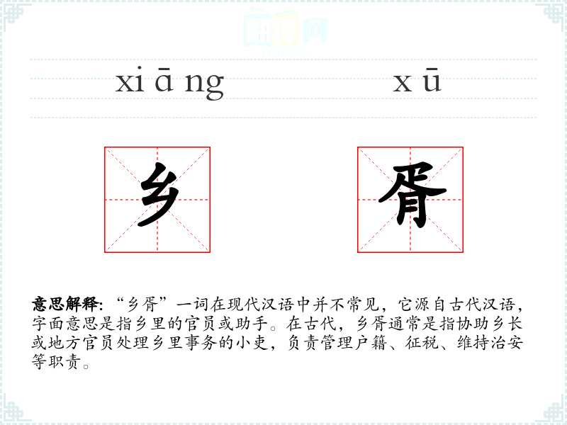 “乡胥”一词在现代汉语中并不常见,它源自古代汉语,字面意思是指乡里的官员或助手。在古代,乡胥通常是指协助乡长或地方官员处理乡里事务的小吏,负责管理户籍、征税、维持治安等职责。
