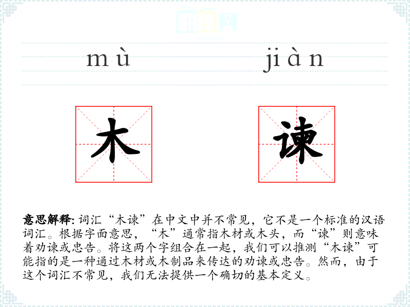 词源与演变方面,由于“木谏”不是一个标准词汇,我们无法追溯其确切的词源和历史演变。