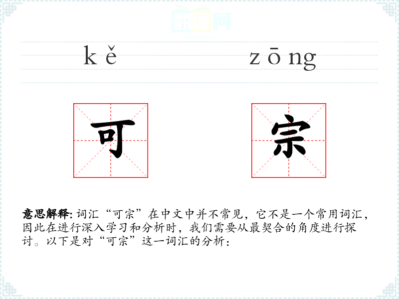 词汇“可宗”在中文中并不常见,它不是一个常用词汇,因此在进行深入学*和分析时,我们需要从最契合的角度进行探讨。以下是对“可宗”这一词汇的分析: