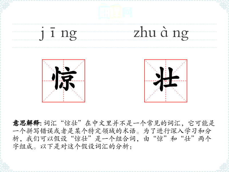通过对“惊壮”这个假设词汇的分析,我们可以看到词汇的组合如何影响其意义和使用。在语言学*和表达中,理解词汇的细微差别和恰当的语境使用是非常重要的。