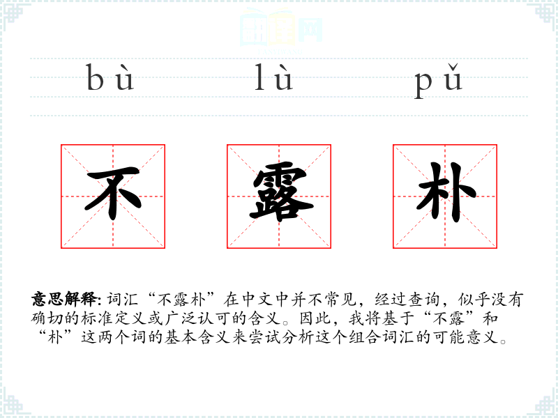 词汇“不露朴”在中文中并不常见,经过查询,似乎没有确切的标准定义或广泛认可的含义。因此,我将基于“不露”和“朴”这两个词的基本含义来尝试分析这个组合词汇的可能意义。