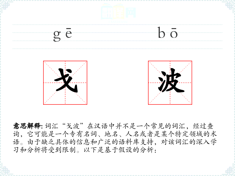 - 字面意思和基本含义:由于“戈波”不是一个标准汉语词汇,其字面意思和基本含义不明确。如果它是一个地名或人名,那么它将不具备一般词汇的普遍含义。