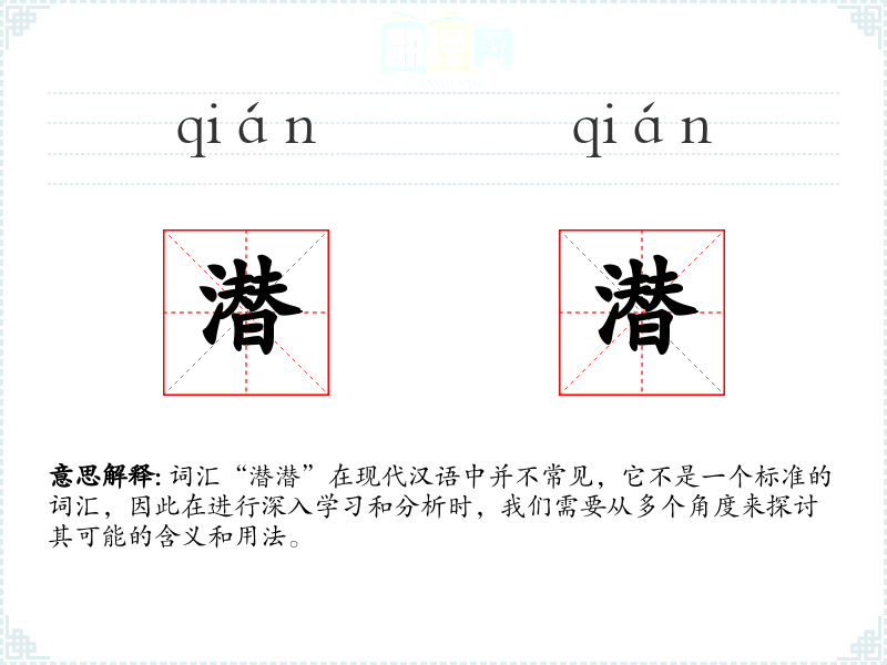 词汇“潜潜”在现代汉语中并不常见,它不是一个标准的词汇,因此在进行深入学*和分析时,我们需要从多个角度来探讨其可能的含义和用法。