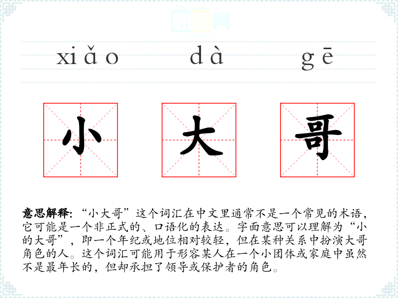 在其他文化中,可能没有直接对应“小大哥”的词汇,但类似的表达可能存在于其他语言中,用以描述在特定小团体中的年轻领导者。