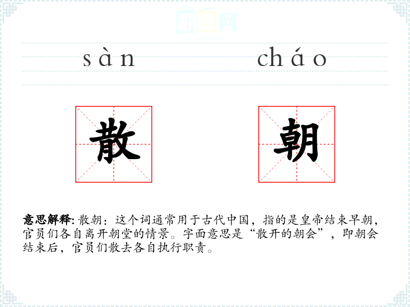 "散朝"的意思解释、散朝是什么意思由翻译网汉语词典查词提供。