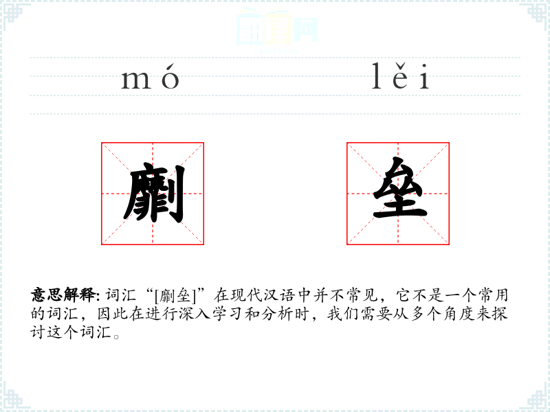 词汇“[劘垒]”在现代汉语中并不常见,它不是一个常用的词汇,因此在进行深入学习和分析时,我们需要从多个角度来探讨这个词汇。