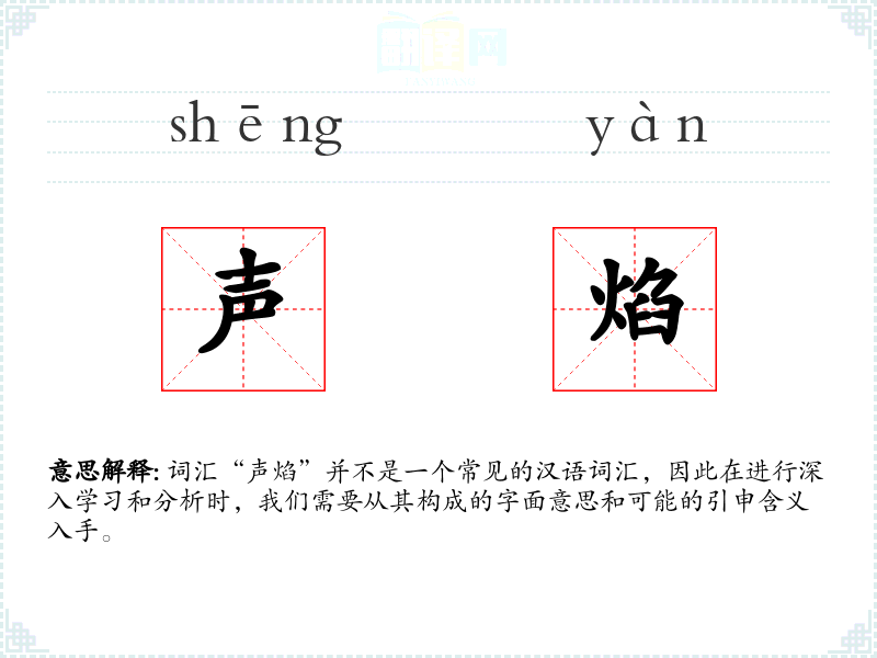 结合起来,“声焰”可以理解为声音的火焰,或者声音如火焰般炽热、旺盛。