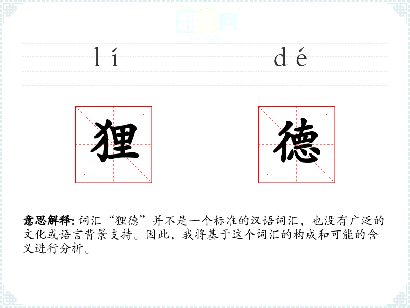 词汇“狸德”并不是一个标准的汉语词汇,也没有广泛的文化或语言背景支持。因此,我将基于这个词汇的构成和可能的含义进行分析。