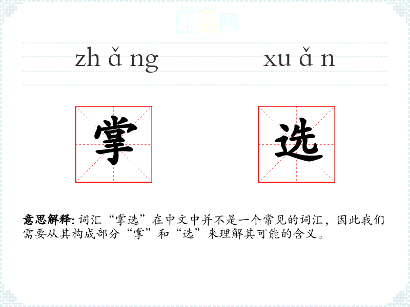 词汇“掌选”在中文中并不是一个常见的词汇,因此我们需要从其构成部分“掌”和“选”来理解其可能的含义。