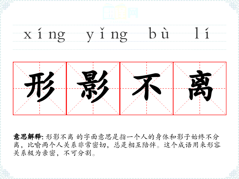 "形影不离"的意思解释、形影不离是什么意思由翻译网汉语词典查词提供。