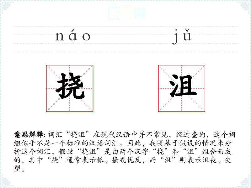 词汇“挠沮”在现代汉语中并不常见,经过查询,这个词组似乎不是一个标准的汉语词汇。因此,我将基于假设的情况来分析这个词汇,假设“挠沮”是由两个汉字“挠”和“沮”组合而成的,其中“挠”通常表示抓、搔或扰乱,而“沮”则表示沮丧、失望。