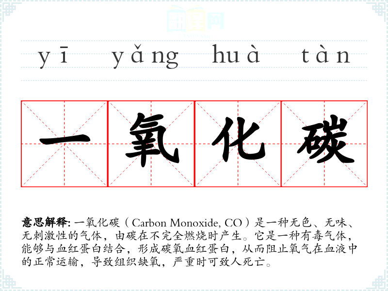 "一氧化碳"的意思解释、一氧化碳是什么意思由翻译网汉语词典查词提供。
