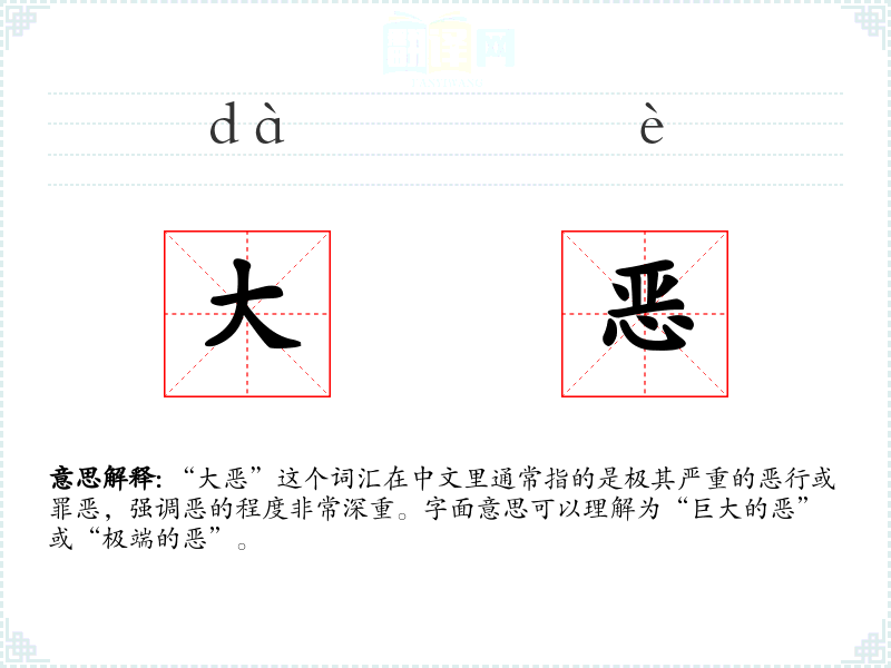 在**传统文化中,“大恶”往往与道德评价紧密相关,是社会对个人行为的一种严厉批判。在现代社会,这个词也常用于法律和道德的讨论中,强调某些行为的严重性和不可容忍性。