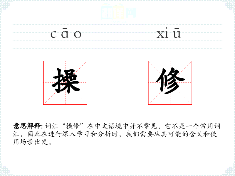 词汇“操修”在中文语境中并不常见,它不是一个常用词汇,因此在进行深入学习和分析时,我们需要从其可能的含义和使用场景出发。