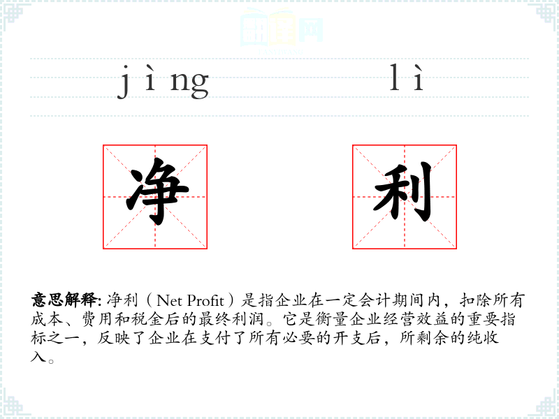- 口语:在日常对话中,净利可能被简化为“净利润”或“净赚”,用来描述某项投资或生意的最终盈利情况。