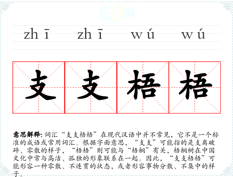 在**文化中,梧桐树常与高洁、孤独的形象联系在一起,因此“支支梧梧”可能带有一定的文化内涵,形容一种孤立无援、零散不集中的状态。