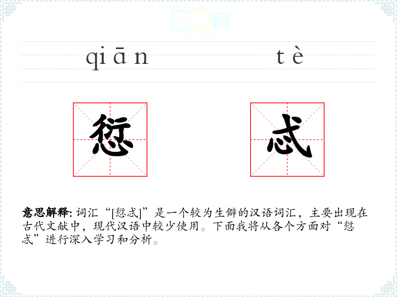 词汇“[愆忒]”是一个较为生僻的汉语词汇,主要出现在古代文献中,现代汉语中较少使用。下面我将从各个方面对“愆忒”进行深入学*和分析。