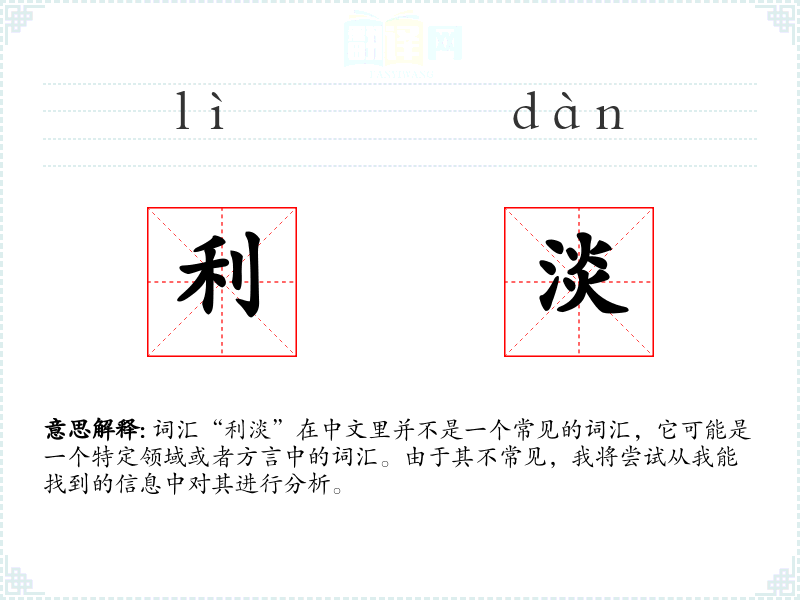 词汇“利淡”在中文里并不是一个常见的词汇,它可能是一个特定领域或者方言中的词汇。由于其不常见,我将尝试从我能找到的信息中对其进行分析。