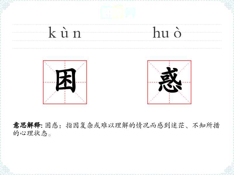困惑:指因复杂或难以理解的情况而感到迷茫、不知所措的心理状态。