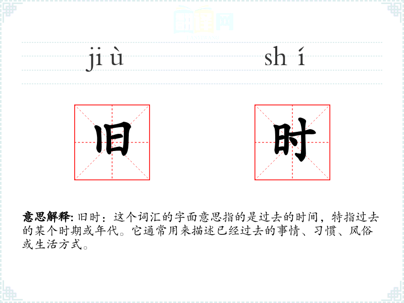 - 专业领域:在历史学或考古学中,“旧时”可能指特定的历史时期或文化阶段。