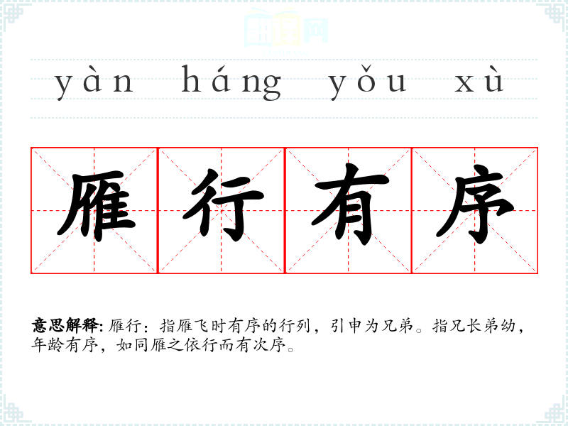 雁行有序的分字解释