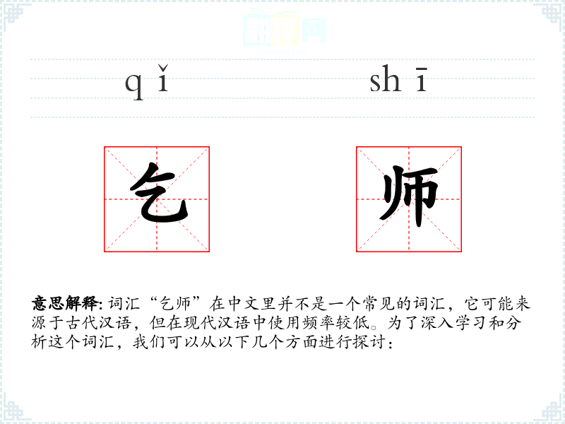 词汇“乞师”在中文里并不是一个常见的词汇,它可能来源于古代汉语,但在现代汉语中使用频率较低。为了深入学*和分析这个词汇,我们可以从以下几个方面进行探讨: