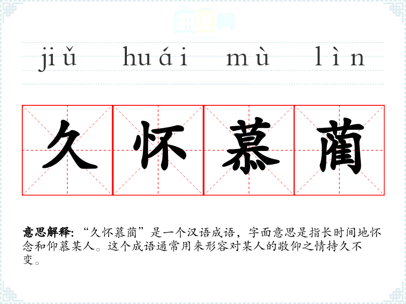 “久怀慕蔺”是一个汉语成语,字面意思是指长时间地怀念和仰慕某人。这个成语通常用来形容对某人的敬仰之情持久不变。