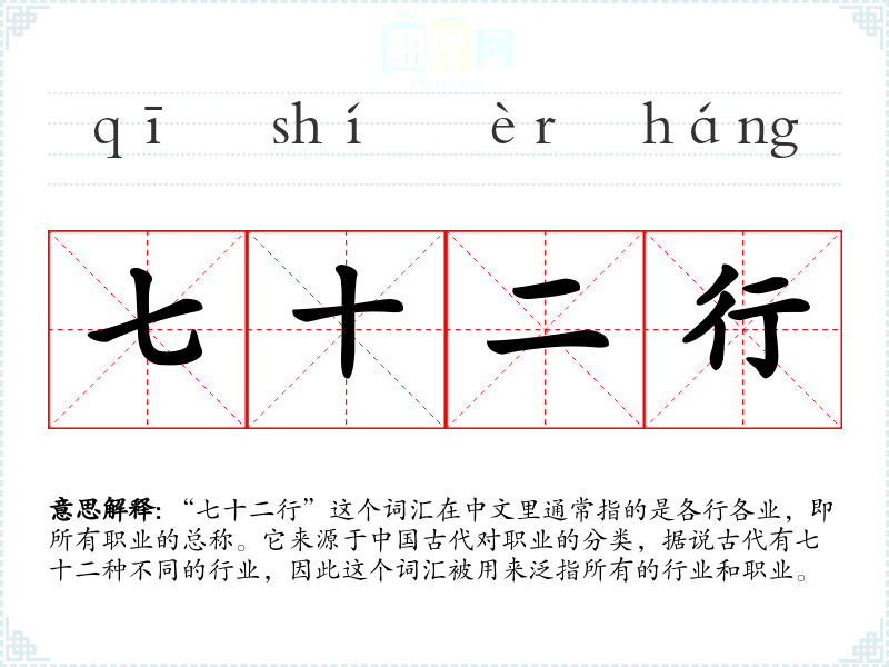 “七十二行”的词源可以追溯到**古代对职业的分类,这种分类体现了当时社会的职业多样性。随着时间的推移,这个词汇的含义逐渐泛化,用来指代所有的行业和职业。