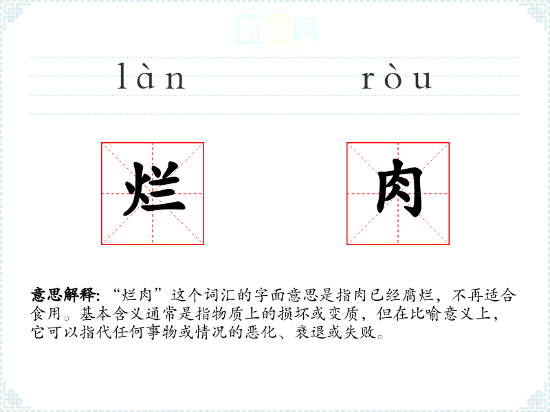 “烂肉”这个词源自古汉语,其中“烂”字最初指的是食物煮熟后的软烂状态,后来逐渐演变为指腐败、变质的状态。在现代汉语中,“烂肉”已经成为一个常用词汇,广泛用于各种语境。