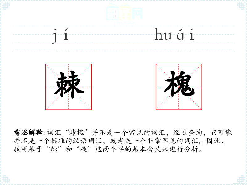 - 同义词:对于“棘”,同义词可能是“刺”或“荆”;对于“槐”,同义词可能是“树”或“木”。