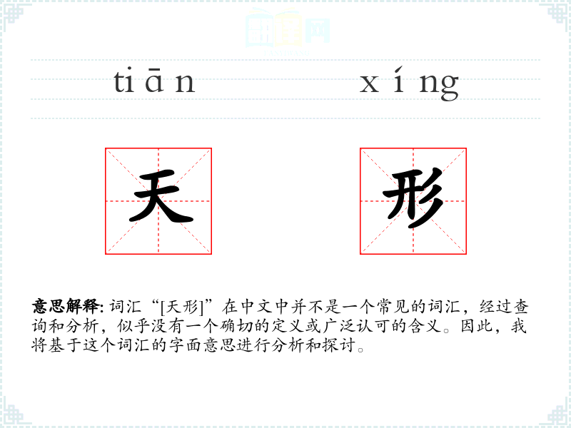词汇“[天形]”在中文中并不是一个常见的词汇,经过查询和分析,似乎没有一个确切的定义或广泛认可的含义。因此,我将基于这个词汇的字面意思进行分析和探讨。