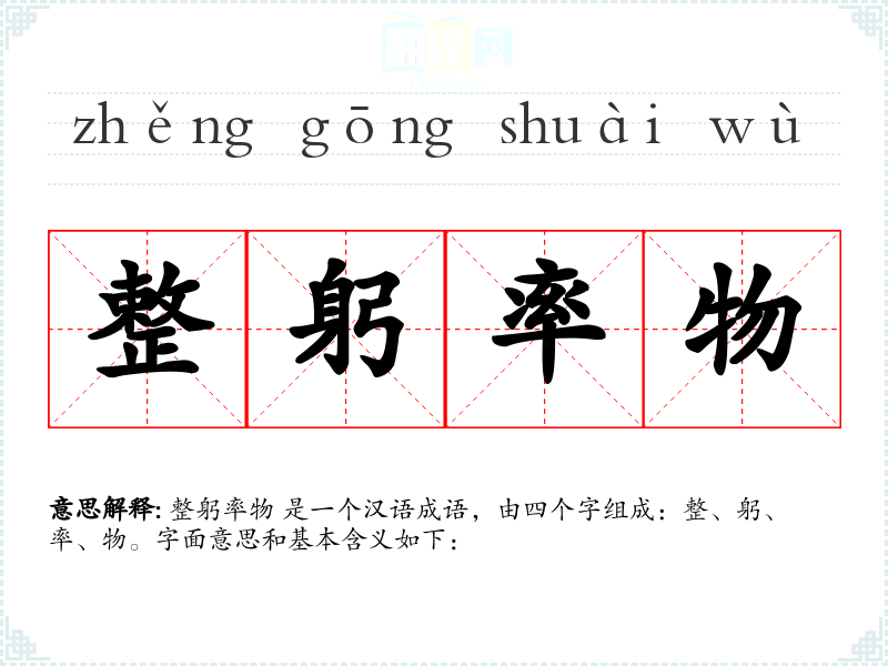 整躬率物 是一个汉语成语,由四个字组成:整、躬、率、物。字面意思和基本含义如下: