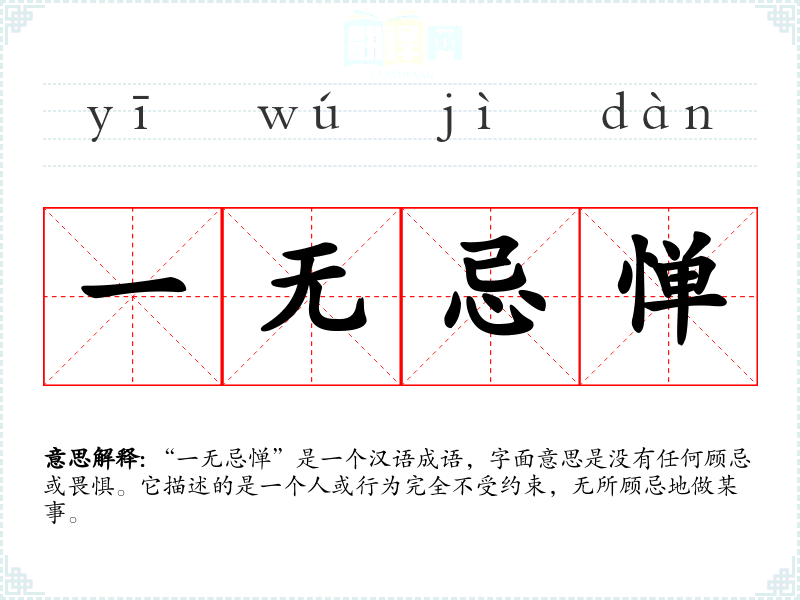 “一无忌惮”是一个汉语成语,字面意思是没有任何顾忌或畏惧。它描述的是一个人或行为完全不受约束,无所顾忌地做某事。
