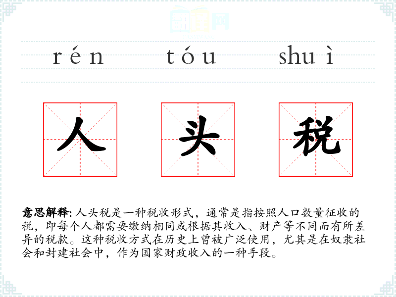 "人头税"的意思解释、人头税是什么意思由翻译网汉语词典查词提供。